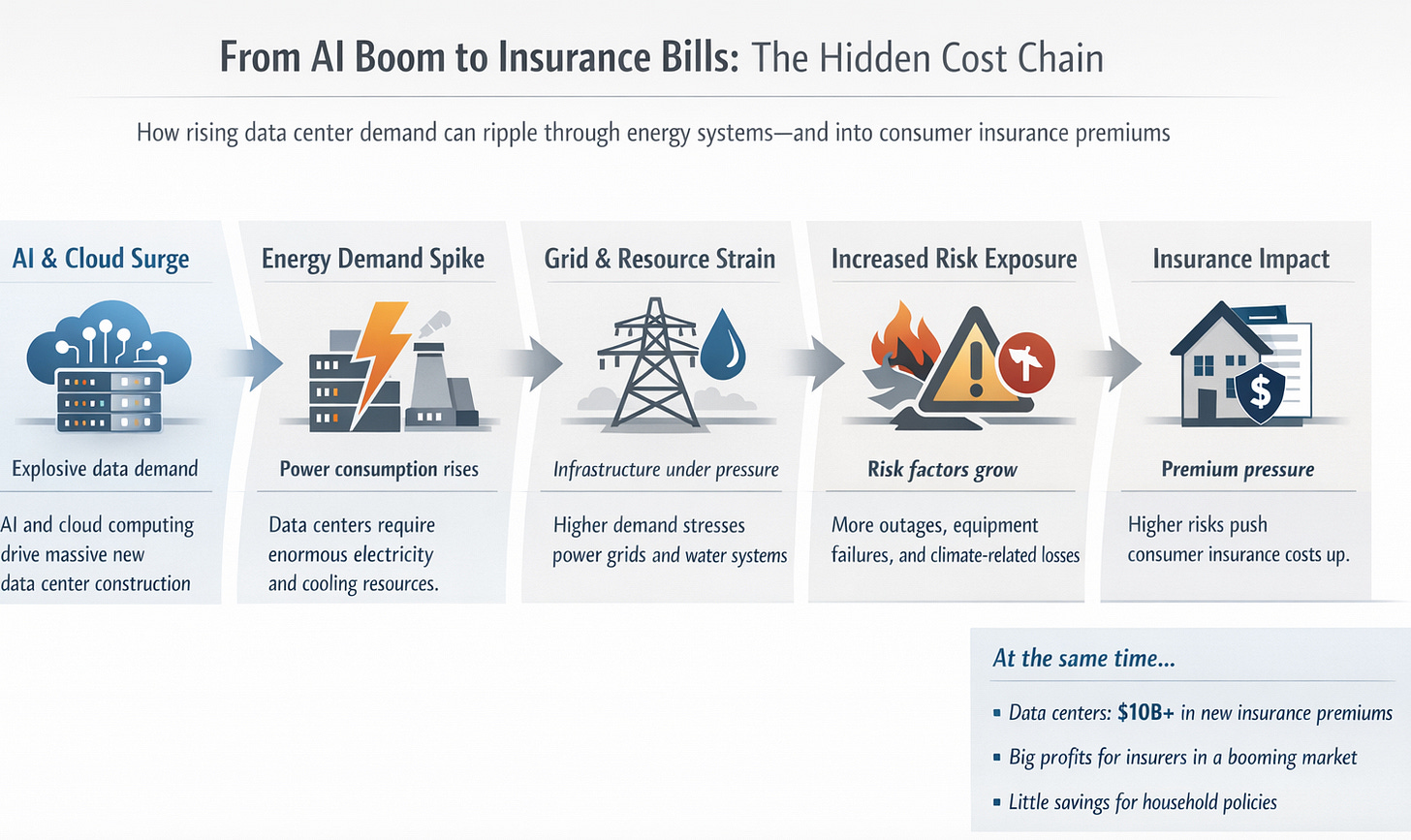 The same AI-driven buildout could raise underlying costs that push consumer premiums higher