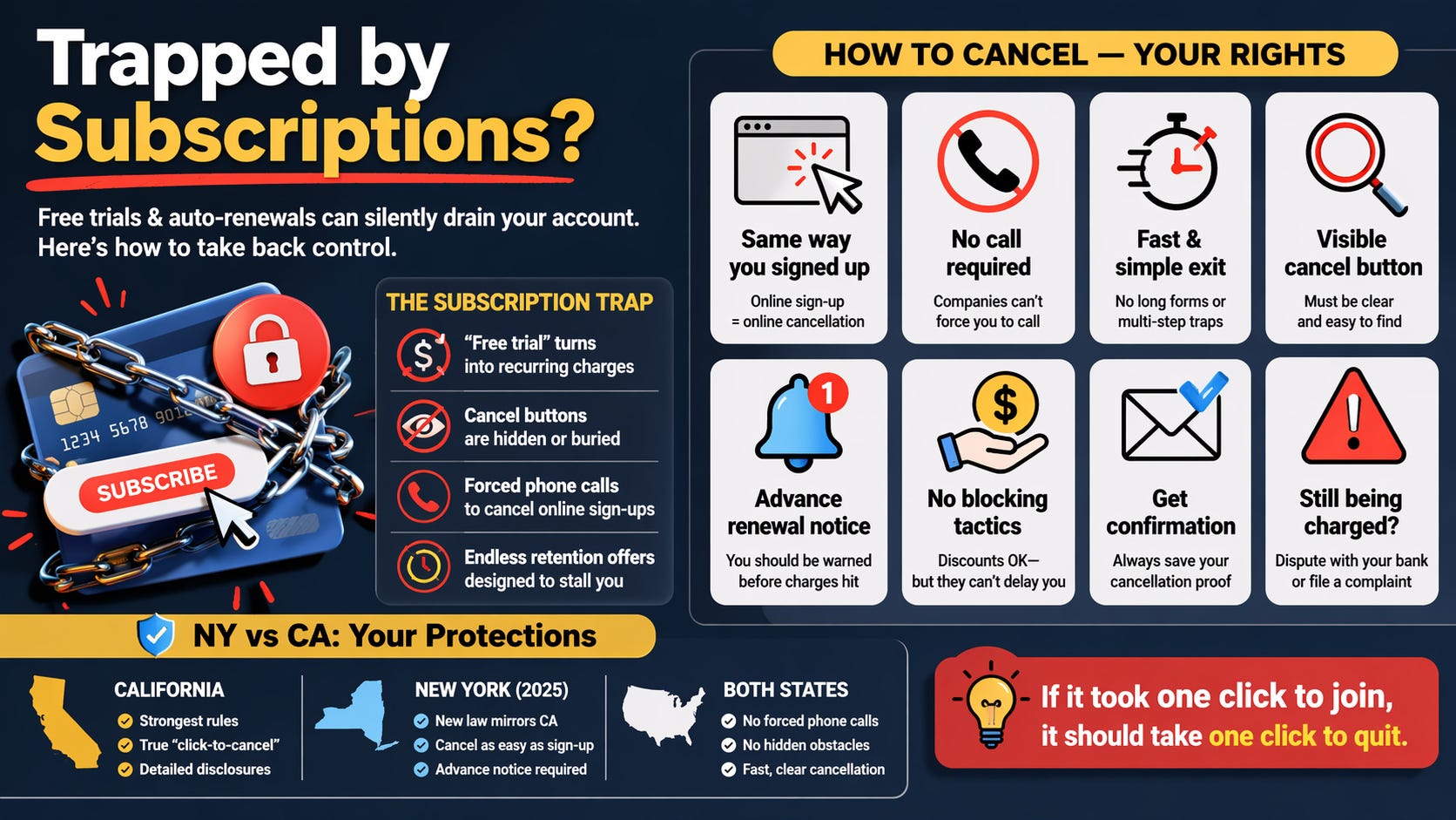 Click-to-cancel: consumer checklist (NY & CA)
