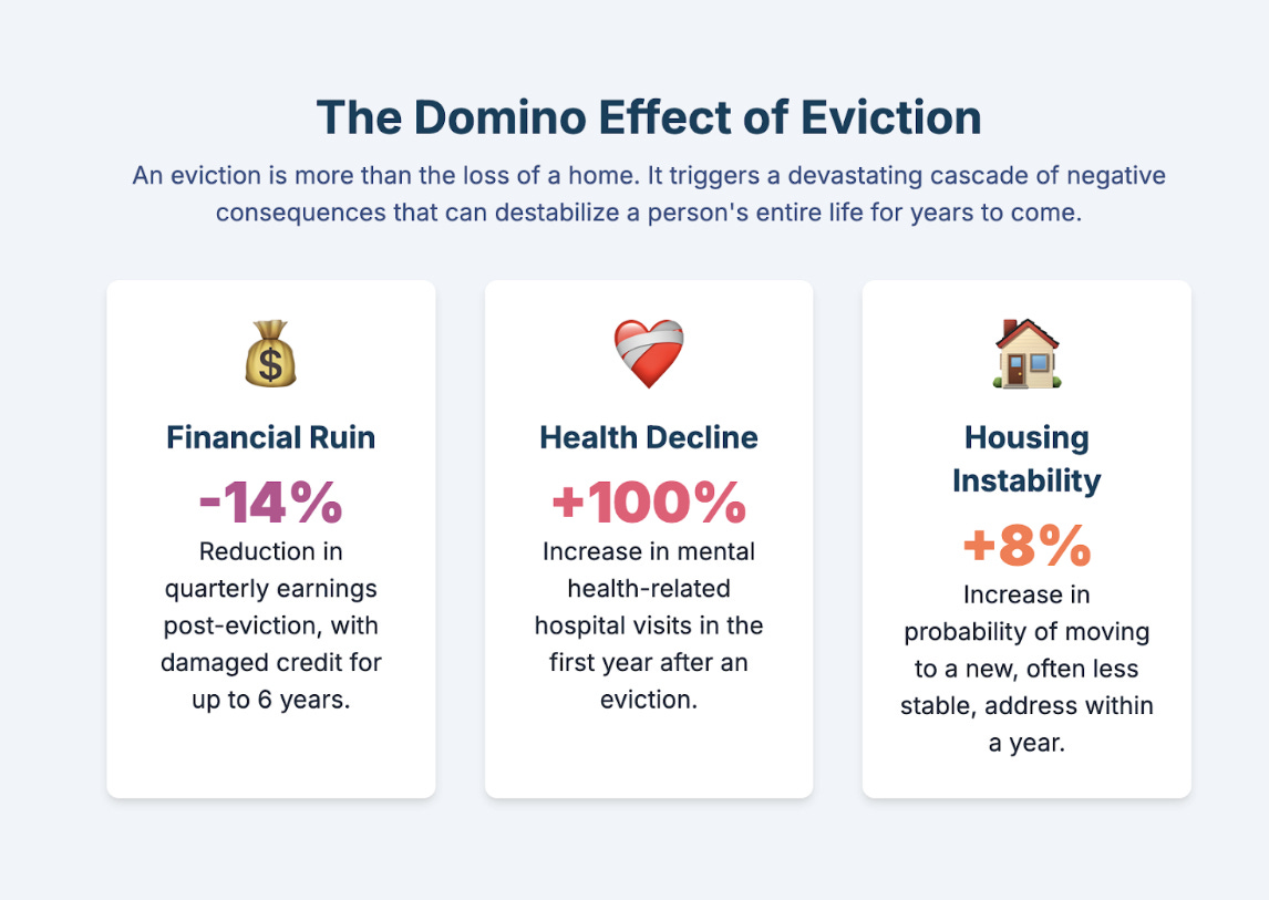 Because once the sheriff’s notice is on the door, it’s not just a housing problem anymore—it’s the start of a years-long spiral. And we have the power to stop it.