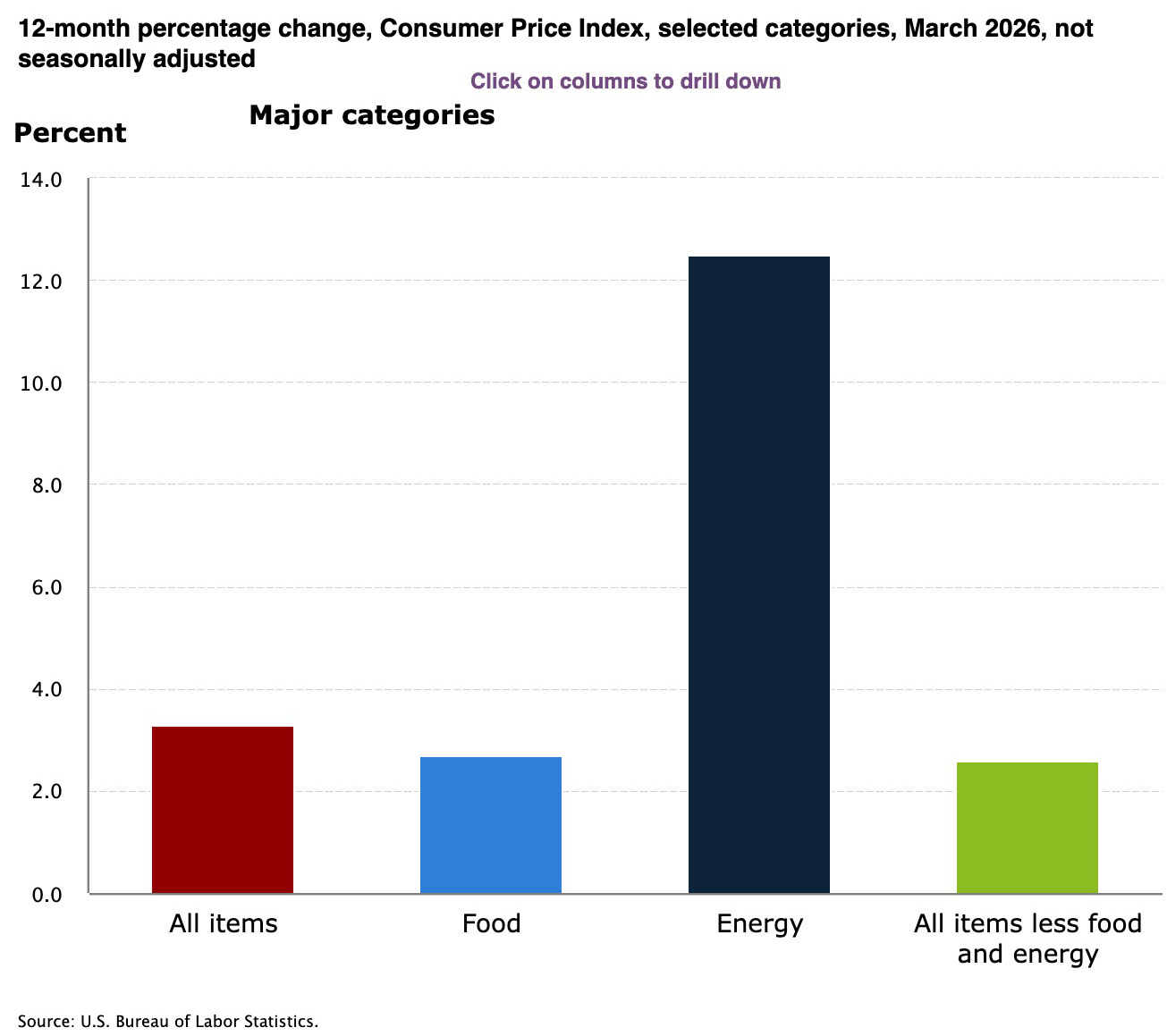 A sharp surge in energy prices tied to the war with Iran drove U.S. inflation to its highest level in nearly two years in March, according to new data from the U.S. Bureau of Labor Statistics.