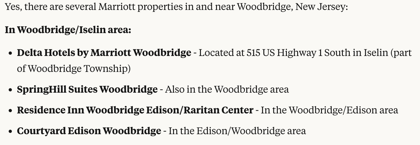 Now let’s do a similar search on Claude, an up and coming AI chat provider. Given the same query, it responds: