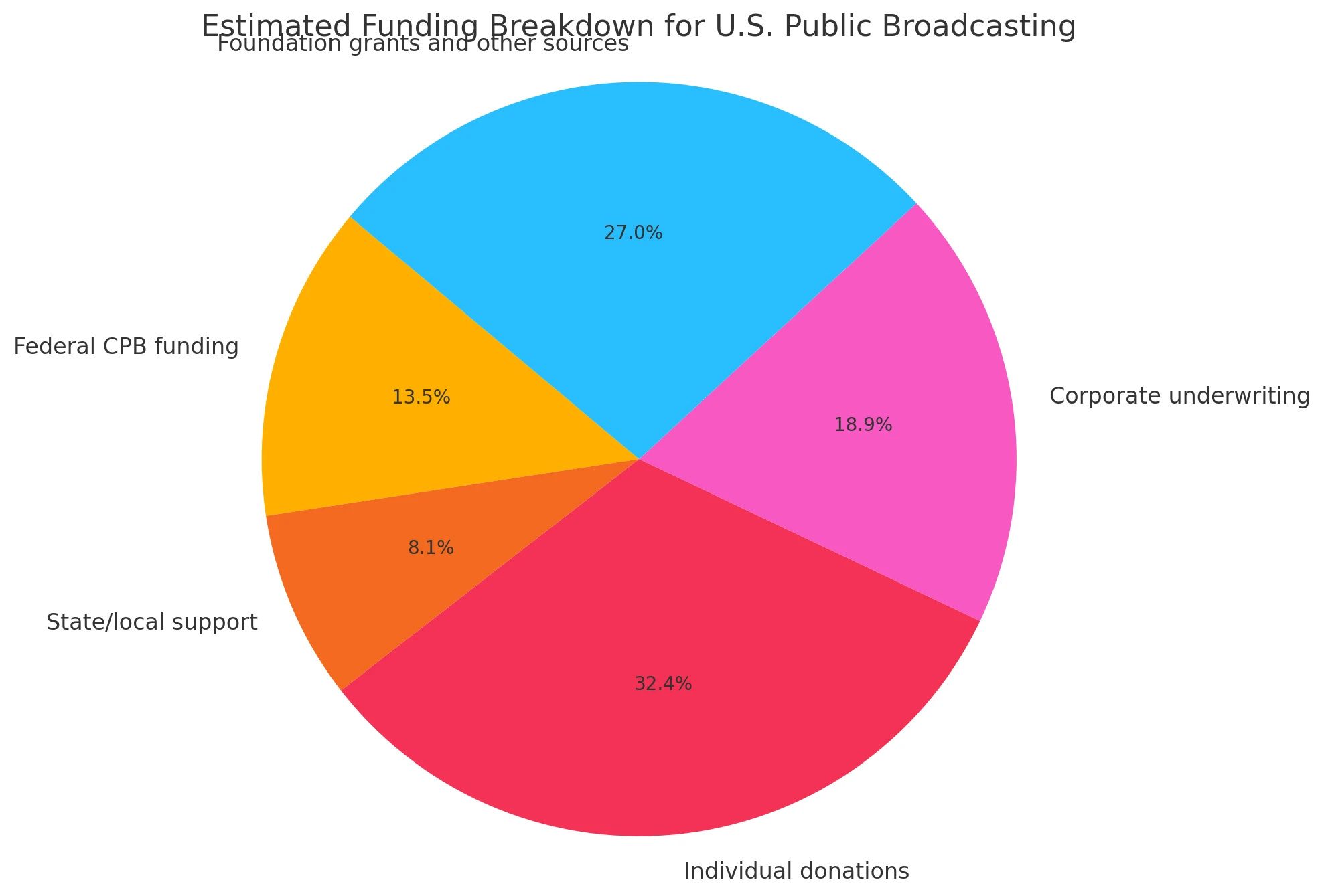The truth, of course, is that federal funding is only part of public broadcasting’s support, which mostly comes from corporate and foundation underwriting and from listeners and viewers “just like you.”