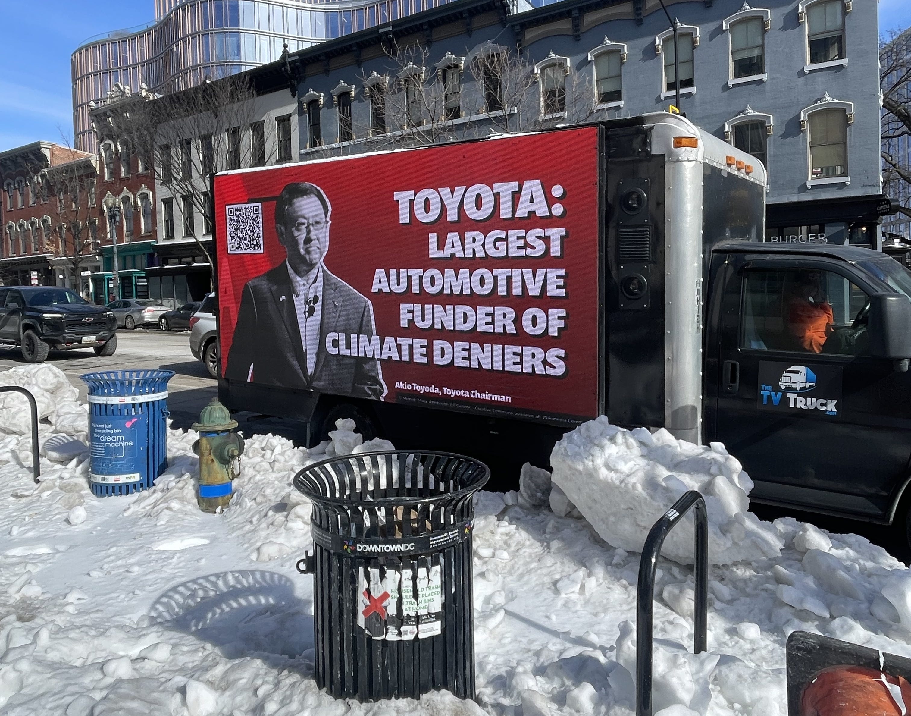 The billboard truck was scheduled to be on display along its route through Sunday, Feb. 1, reaching thousands of car aficionados who attend the auto show. The action follows last year’s auto show, where Public Citizen activists disrupted Toyota’s award presentation, calling on Toyota to stop funding the campaigns of climate deniers.